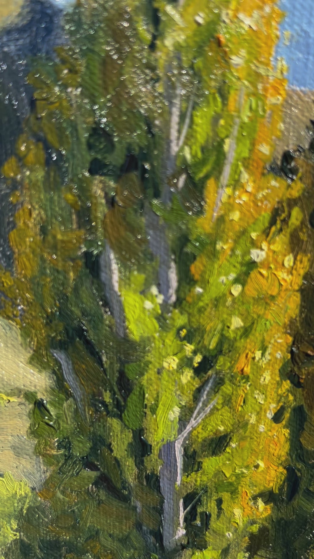 Returning to one of my most cherished painting locations, I was immediately struck by the dramatic silhouettes of these iconic Lombardy poplars reaching skyward against the foothills of the mountains. The first whispers of autumn had begun their magic - I watched as leaves caught the warm sunlight, transforming from deep green to luminous gold before my eyes. Working quickly with my oil paints, I sought to capture not just what I saw, but the very character and spirit I felt from these sentinel trees in their magnificent landscape setting.