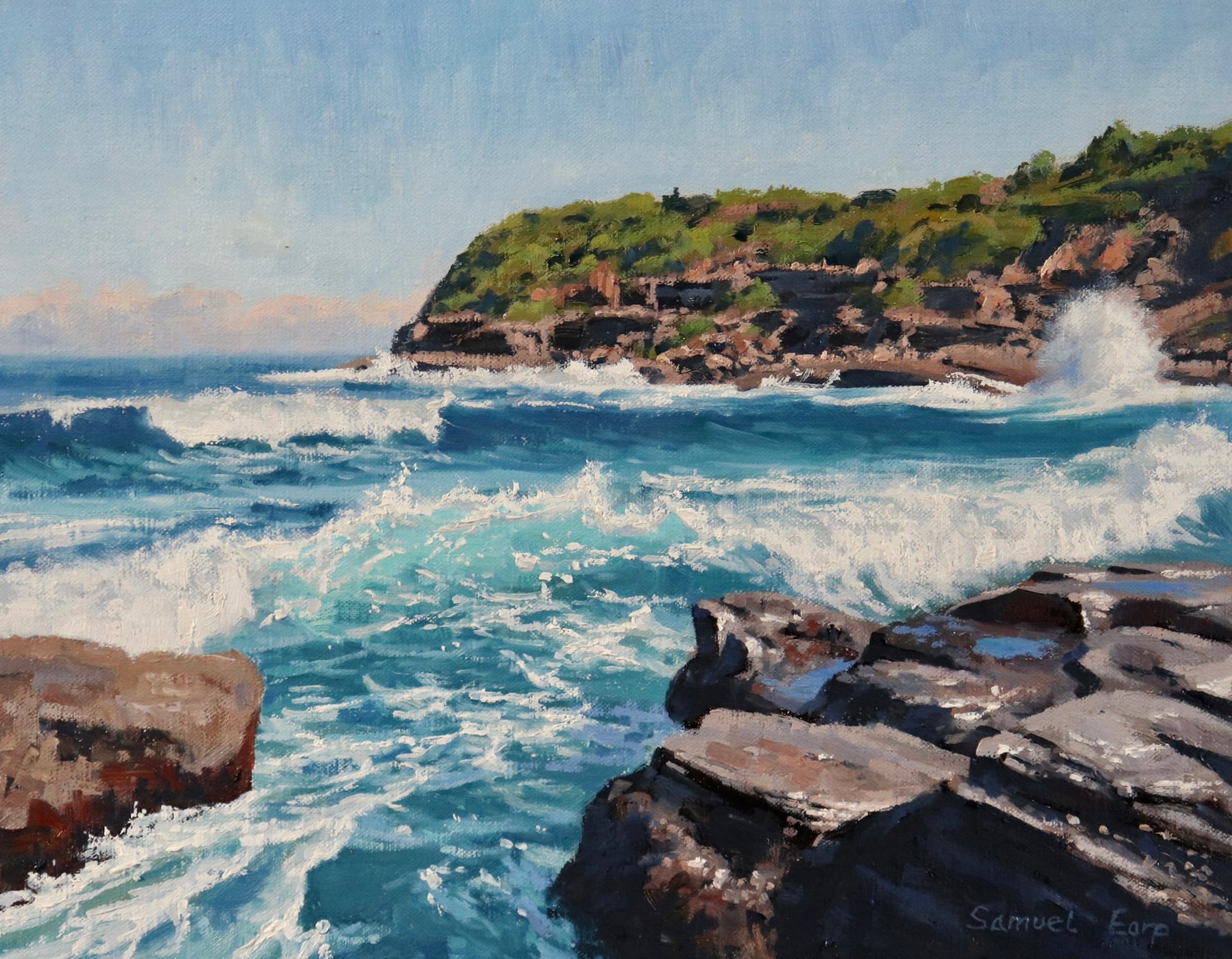 This original Australian seascape painting offers collectors an authentic piece of coastal artwork that embodies the raw beauty and tranquil power of one of Australia's most spectacular shorelines.