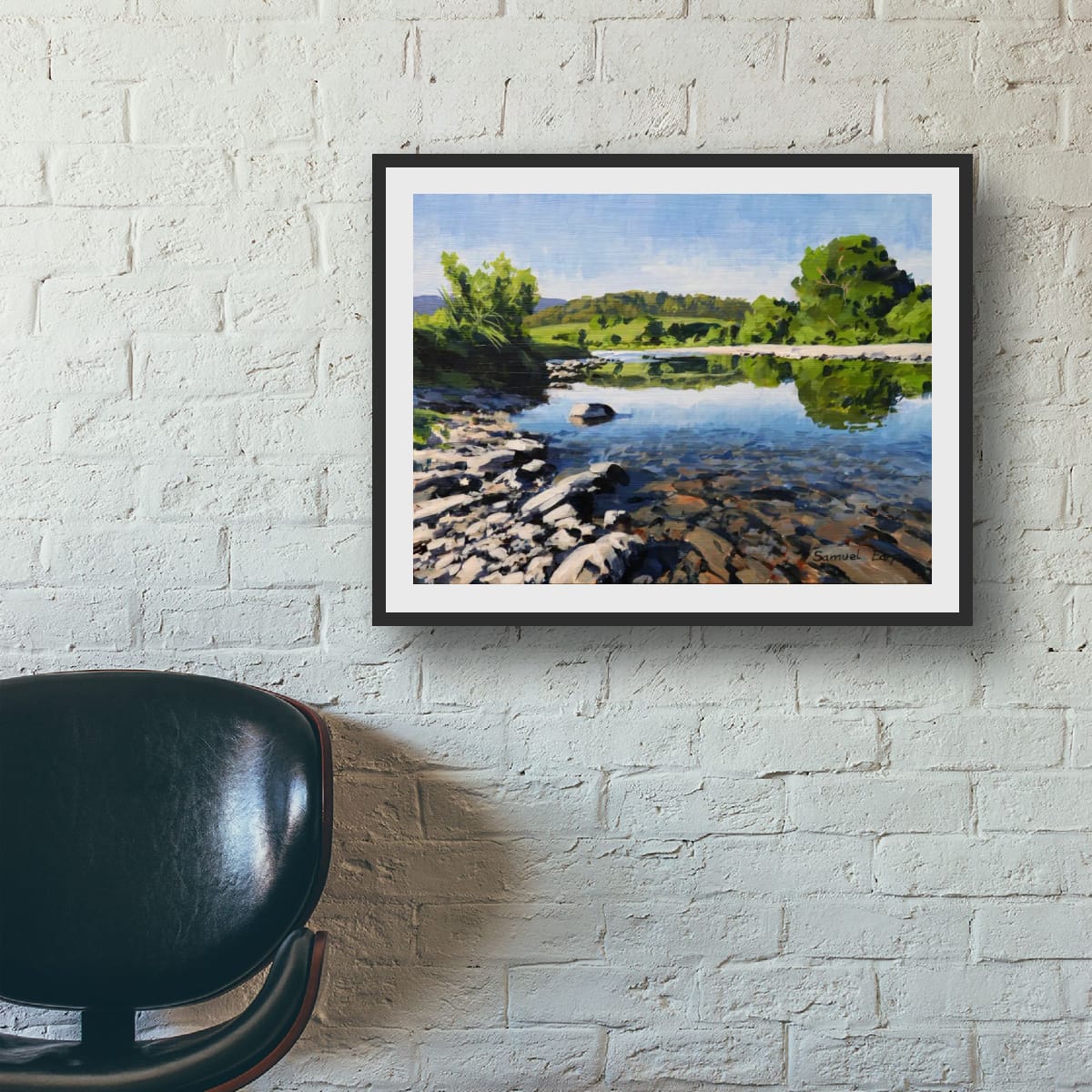Bring the calming beauty of New Zealand’s natural landscapes into your home with “Transparent Tranquility,” an original acrylic painting by Samuel Earp. Inspired by a serene river in the lower North Island on a crisp spring morning, this artwork captures the essence of untouched nature and peaceful reflection.